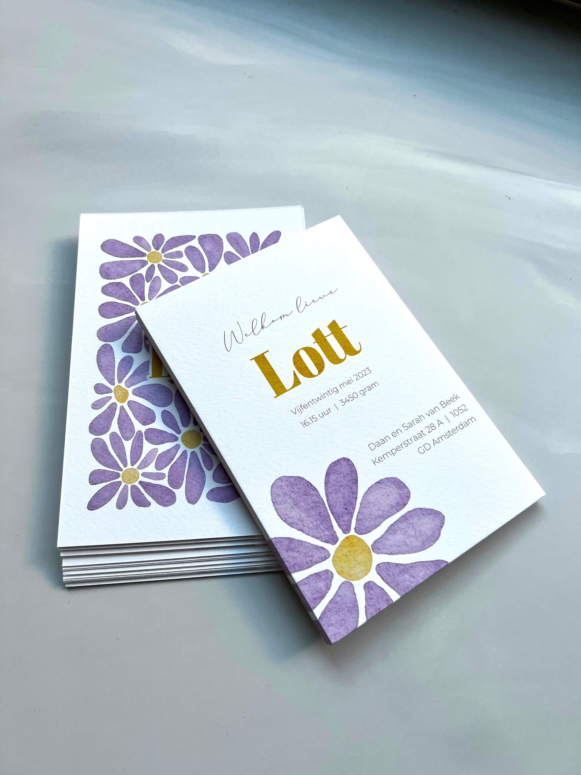 De watercolor walvis voor het geboortekaartje Luuk geeft het design een eigentijds, lief, maar ook stoere uitstraling. Een prachtig voorbeeld van less is more.