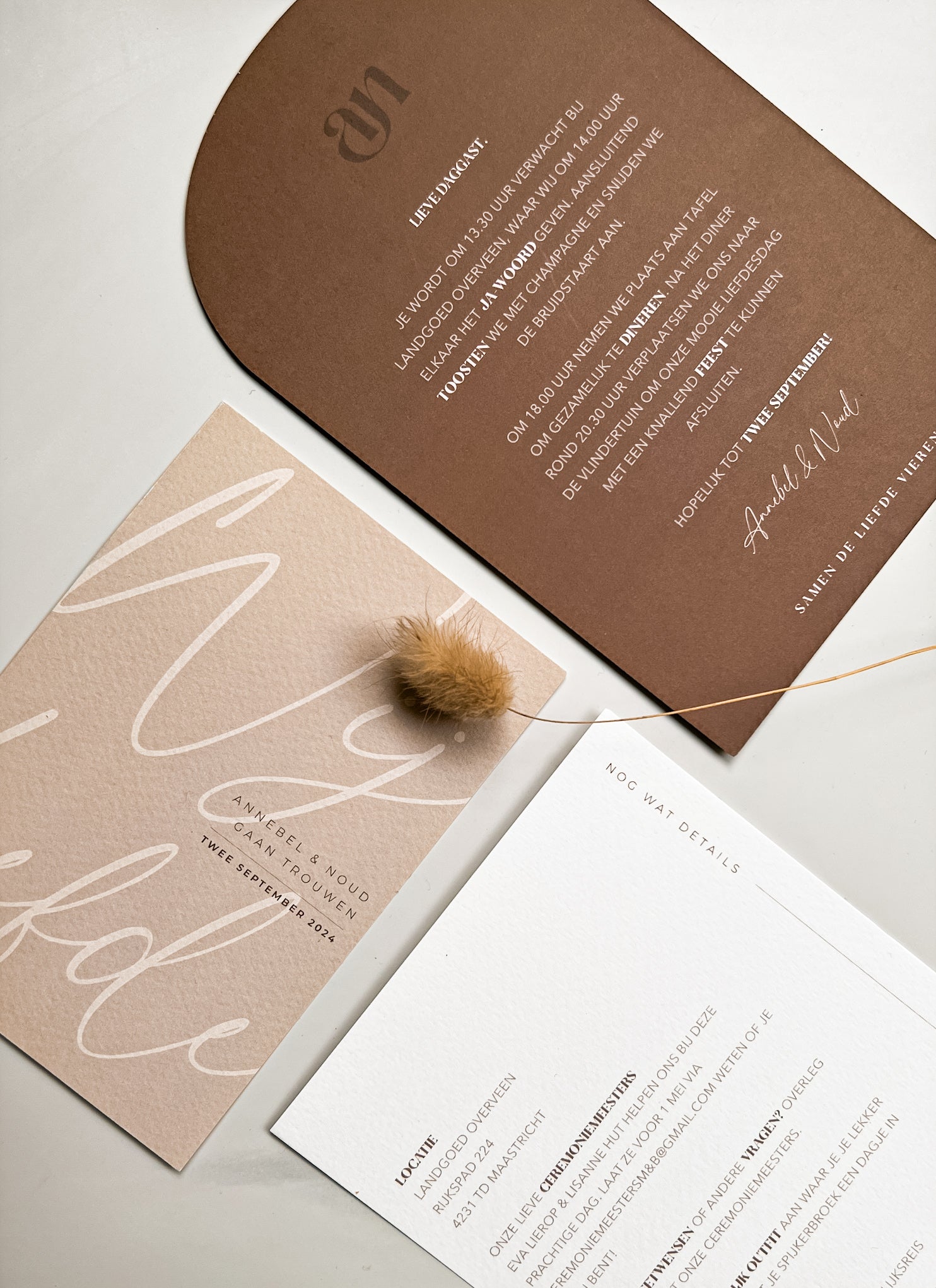 Wil je graag on the day stationery? Tijdens het ontwerpproces bespreken we alle mogelijkheden en kosten. Er is veel mogelijk waardoor het lastig is om vooraf een prijs te vermelden.
